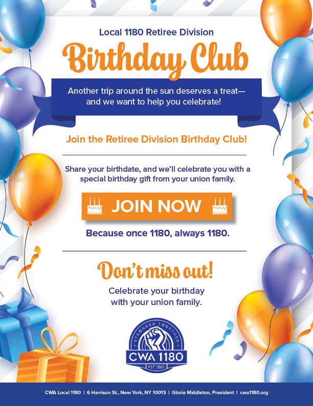 Call the Retiree Division to reserve your spot today: 212.226.5800